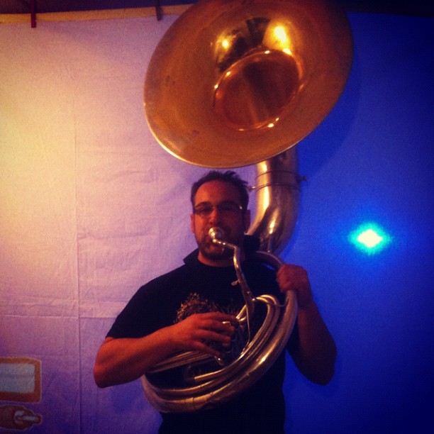 Jaime, jugando con un helicón.