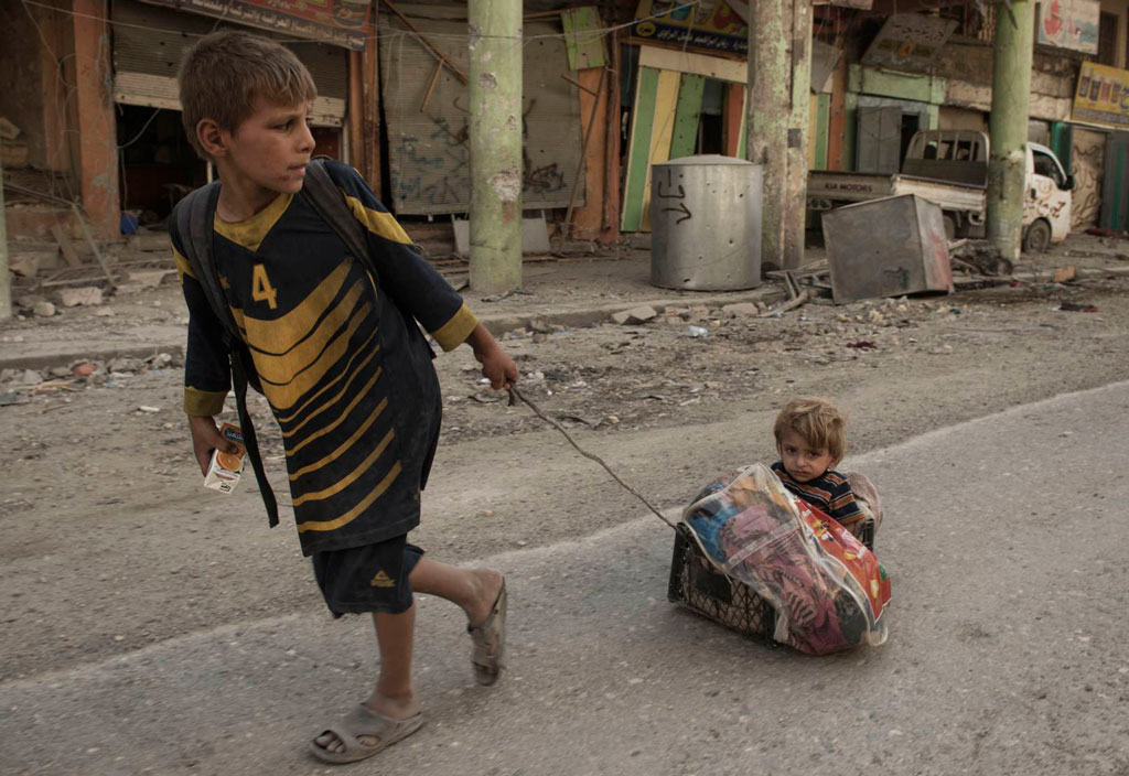 Dos niños en las calles de Mosul (Irak). Romenzi (Unicef). Fuente de la imagen: El País