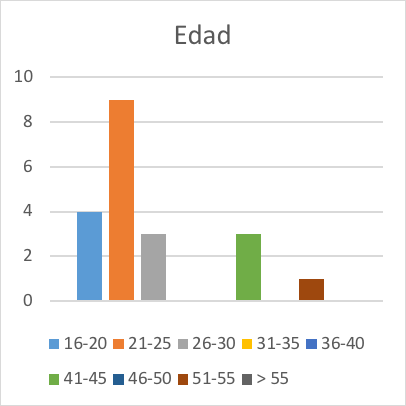 Gráfico 2. Gráfico de edad que representa a la población desde los 16 a más de los 55 años.